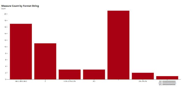 - Measure Formatting – Identify the different types of measure formatting applied to the measures