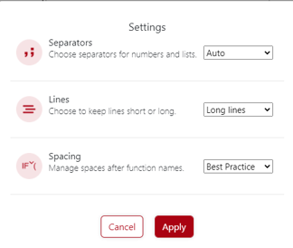 - Configuration options that are available for DAX Formatting: