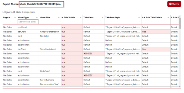 When a custom theme is applied to the report, all the deviations from the