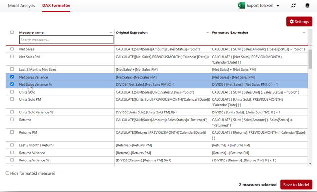 - DAX Formatting – Format all the DAX measures using a single click (uses DAX Formatter nuget package developed by SQLBI