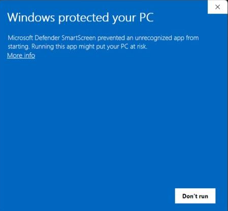 If prompted about the Windows protection, click on More info, then click on